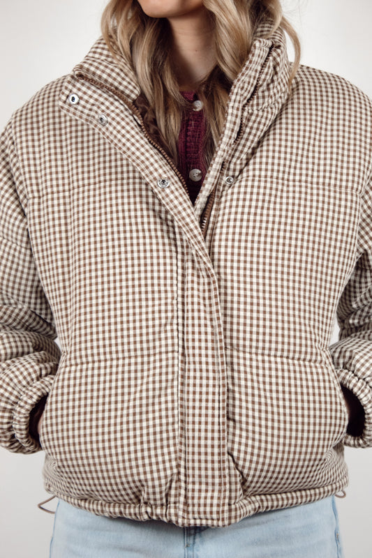 Brown Gingham Puffer Jacket